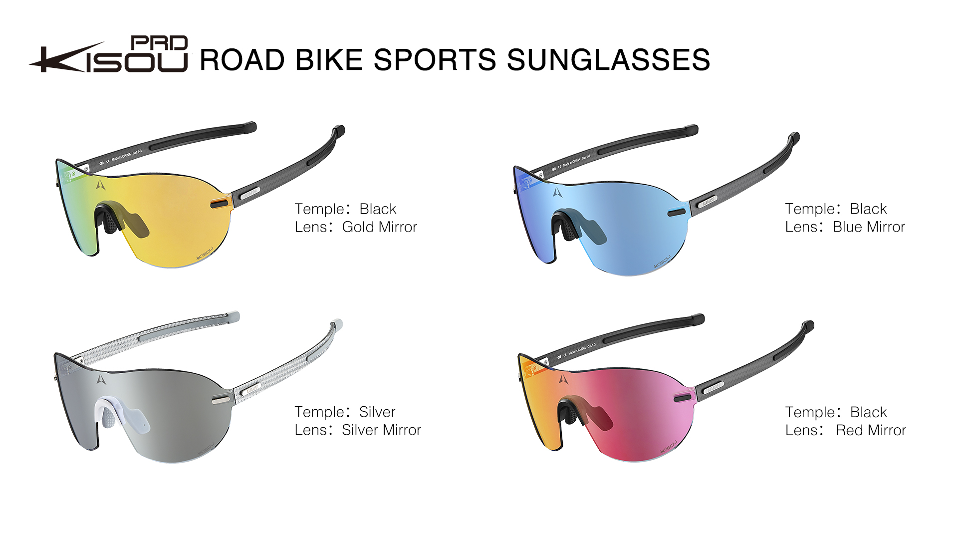 The temples and nose pads are adjustable in three sections to fit different face shapes.