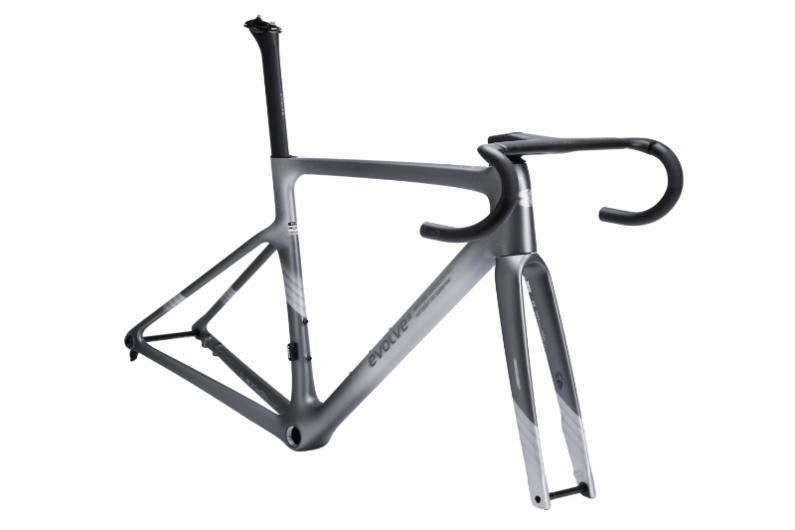 The evolve® CIMA is a performance road frame crafted from high-end TORAYCA T1100, T800, and M40 carbon fiber for optimal strength and lightweight performance, weighing just 650g in size M (unpainted). Available in six sizes, it accommodates riders from 146cm to 202cm, ensuring a perfect fit. The frame’s geometry, with STR values from 1.36 to 1.50, two offset forks, and three BB drops, provides smooth, responsive handling across all sizes.