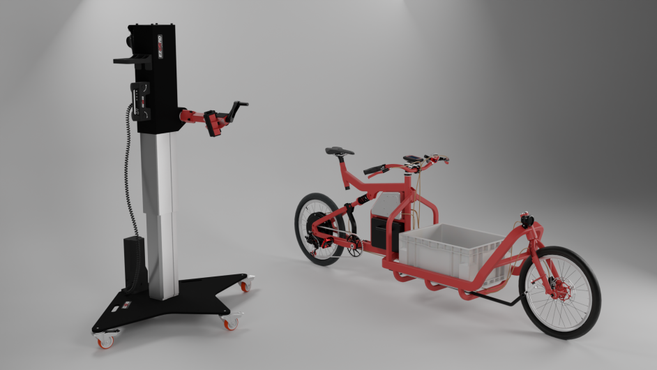 The new Ezoord Cargo Bike Electric Repair Stand is specifically designed for the maintenance and repair of cargo bikes. You can easily lift and rotate your cargo bike safely and without effort—ideal for workshops, bike shops, and professionals who regularly work with heavy-duty cargo bikes.