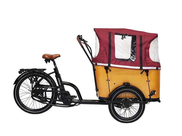 The Royal 3-wheel cargo bike is safe, stylish and comfortable. With 24" front wheels, hydraulic brakes and a sturdy polyethylene cargo box, it is perfect for up to 4 children. Stylish details include wooden benches, aluminum side panels and an optional wooden door - ideal for taking your dog.