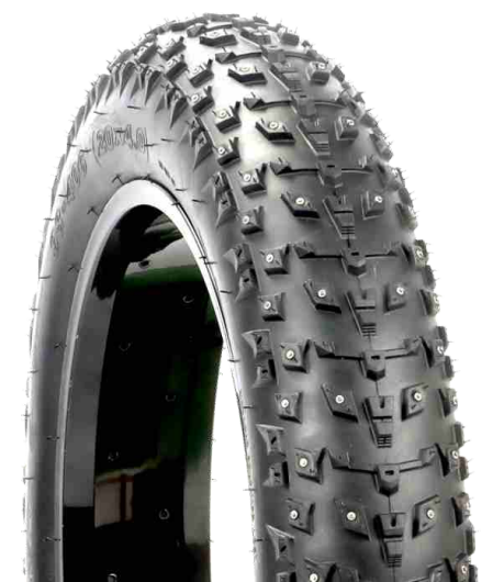Snow tires, with nails embedded on the tires to increase ground friction, can be ridden well in snow