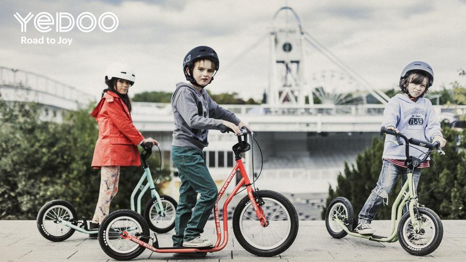 16“/12“ wheels with wider tyres, which will safely and comfortably handle all surfaces (asphalt, cobblestones as well as lighter terrain); a larger front wheel adds speed to the scooter