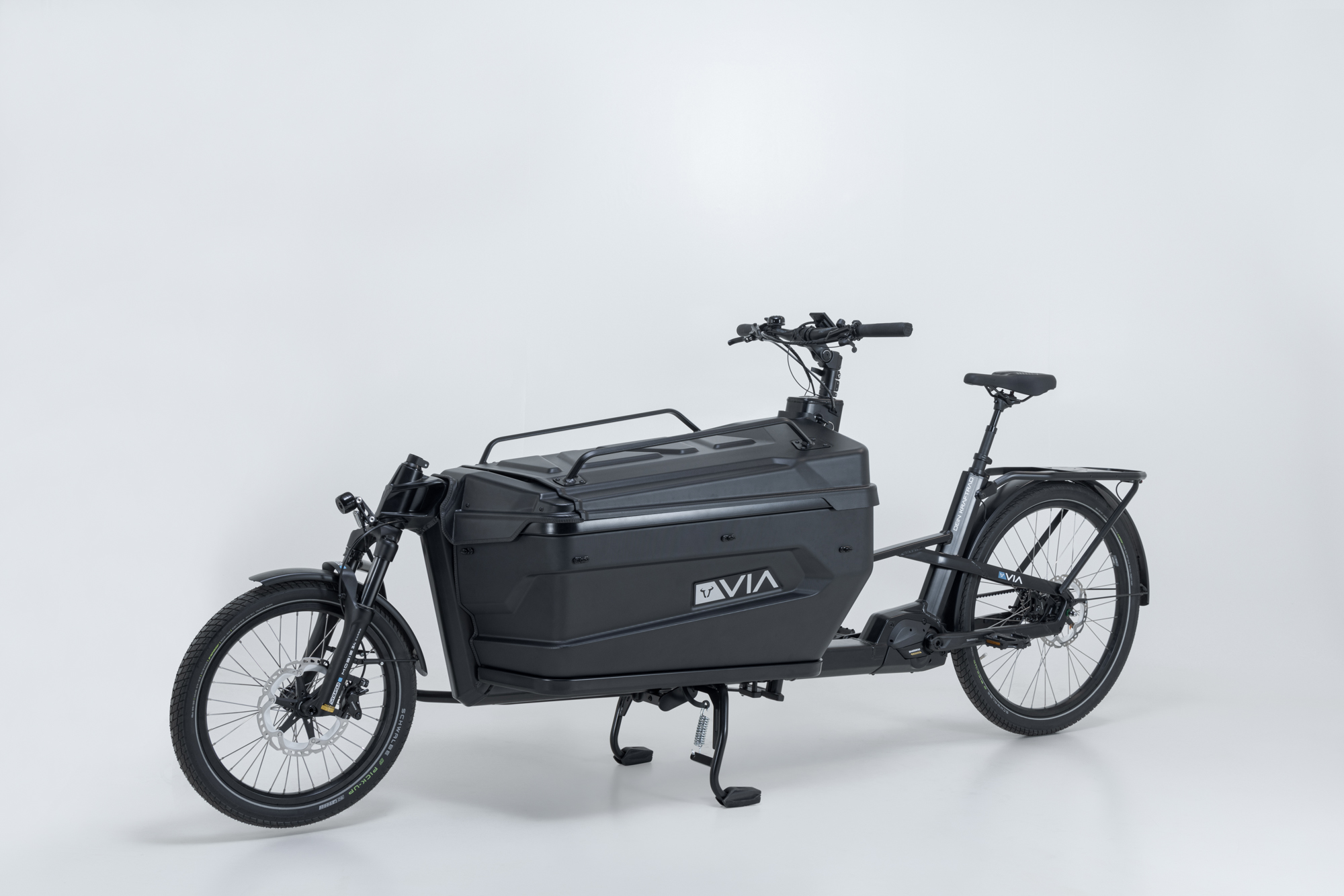 The VIA 1 Box e-cargo bike transports your shopping, heavy loads or your dog. The large box has a volume of 200 liters and thus offers enough space for bulky items, boxes, shopping bags and also your friend.
