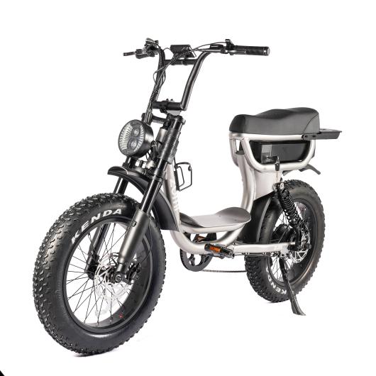 This 20-inch fat tire electric bike is engineered for urban mobility with a strong focus on rider comfort and safety. Featuring an extended saddle for dual riding, robust front and rear suspension, and a powerful hub motor, it ensures a smooth and stable ride through city streets and uneven terrain. Equipped with premium Kenda tires, integrated lighting, and a sturdy rear rack, this model is ideal for daily commuting and short-distance transport. CE-certified and designed to meet the quality and safety standards of the European market.